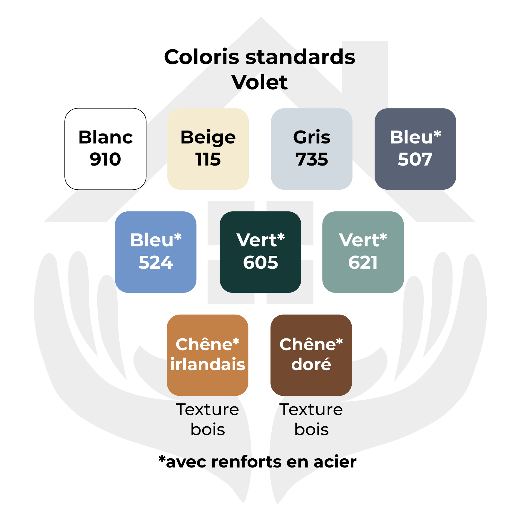 Pour harmoniser facilement vos volets roulants à vos ouvertures et à la façade de votre maison, France Ecoline vous propose une conception sur-mesure qui vous permet de choisir un coloris des volets qui vous plaît, parmi une large palette de nuances disponibles.